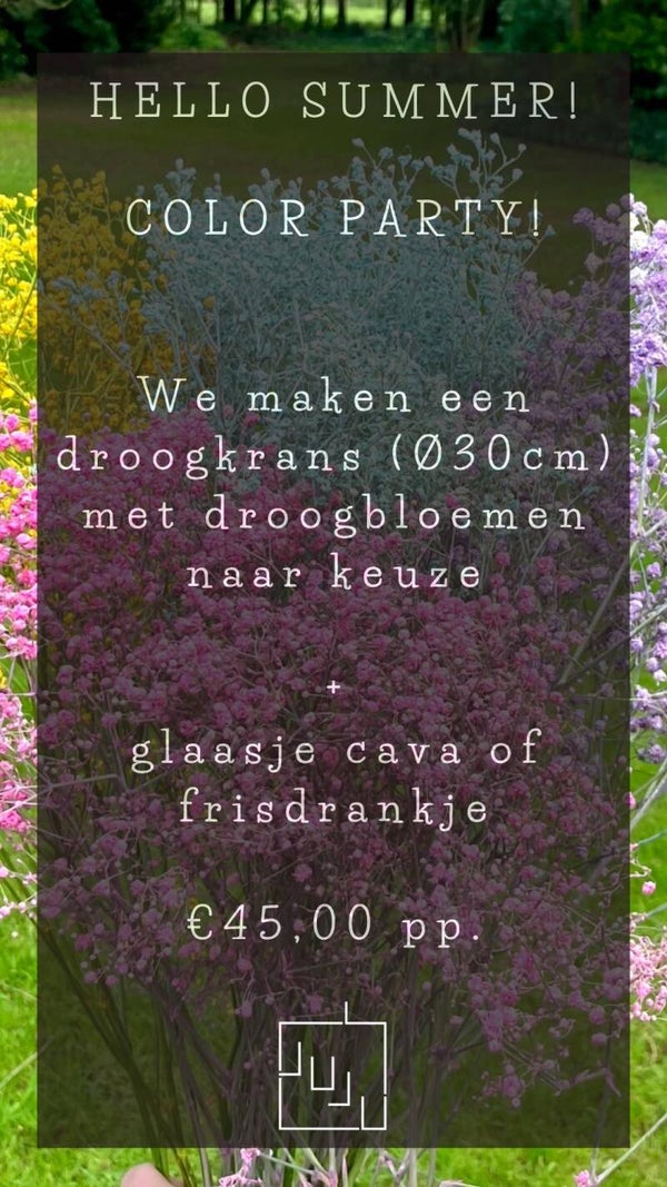 We maken een droogkrans (Ø25cm) met droogbloemen naar keuze.