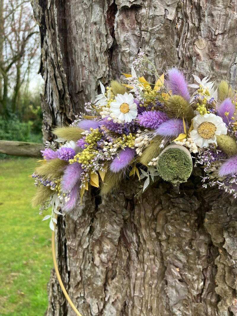 We maken een droogkrans (Ø25cm of Ø30cm) met droogbloemen naar keuze.